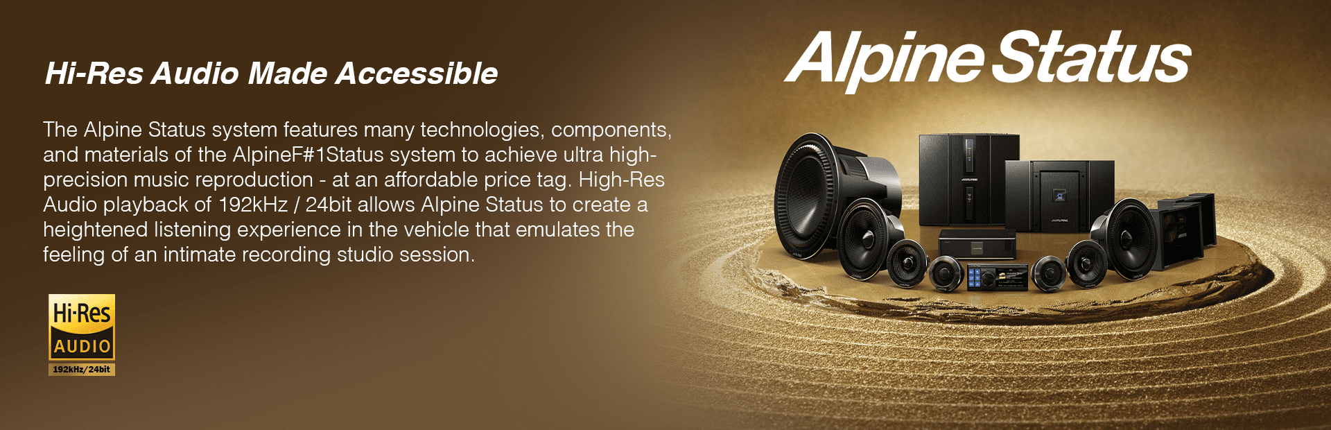 Alpine Introduces the all-new Alpine Status sound system: using the same engineering and design concepts drawn from the third generation, Ultra High-Resolution AlpineF#1Status system, Alpine created “Alpine Status” to achieve High-Resolution Sound at a more approachable and accessible price point. The Alpine Status system is also extremely flexible: all components can be purchased and used in “stand-alone” configuration.